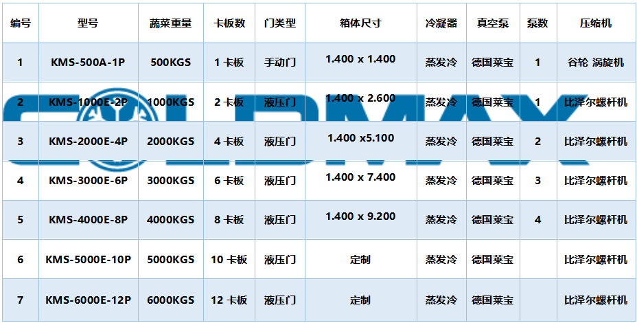 注:風(fēng)冷式真空預(yù)冷機設(shè)備一般采用比澤爾或者谷輪壓縮機,冷凝器風(fēng)冷冷凝器;
