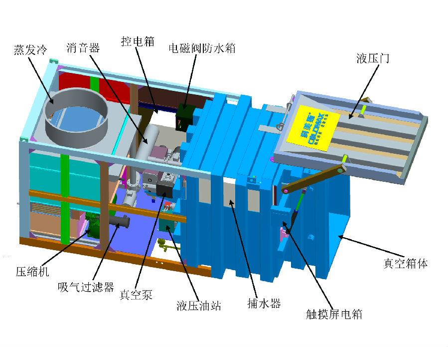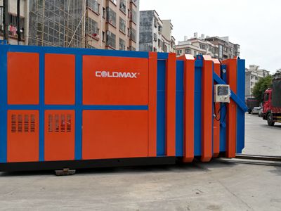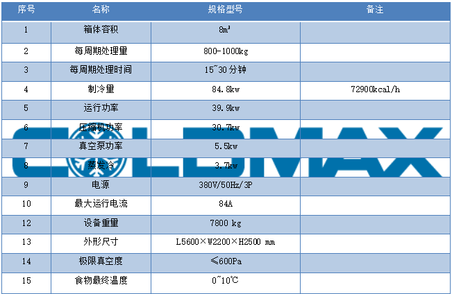 兩卡板果蔬真空預冷機主要針對中型農場的預冷加工使用;真空箱容積8m3,庫容量1000kg,預冷溫度設計為0~10℃;