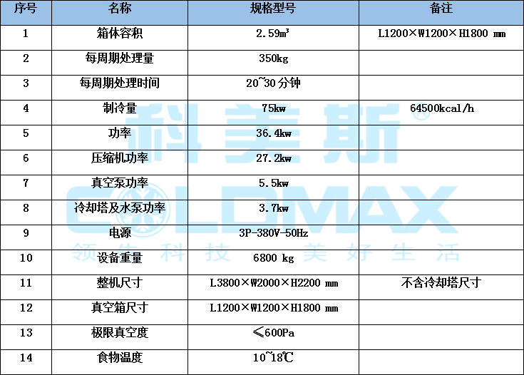 東莞科美斯食品加工技術,憑借自身深厚的技術積淀和精湛的加工工藝,結合國內食品工業特點,推出國內行業技術水平的科美斯真空快速冷卻機。 科美斯真空預冷機可以使產品從100℃冷卻到常溫僅需5-10分鐘,冷卻到0℃僅需20分鐘左右。