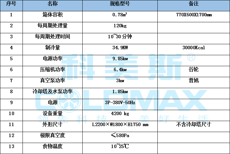 東莞科美斯食品加工技術,憑借自身深厚的技術積淀和精湛的加工工藝,結合國內食品工業特點,推出國內行業技術水平的科美斯真空快速冷卻機。 科美斯真空預冷機可以使產品從100℃冷卻到常溫僅需5-10分鐘,冷卻到0℃僅需20分鐘左右。
