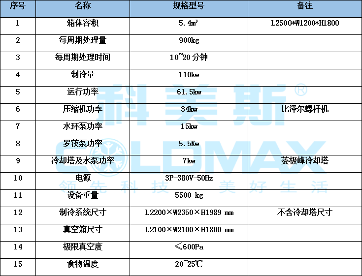 科美斯食品真空快速冷卻機的特點:
