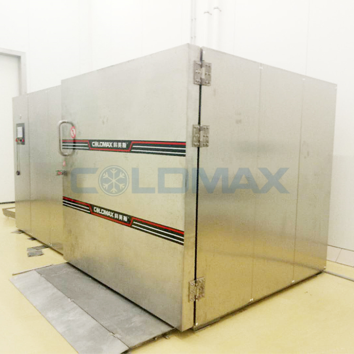 隨著人們生活水平的提高,冷卻環節對于熟食品生產企業越來越顯得重要了。以前,國內熟食品生產加工行業中的常規作法,多采用的是傳統冷卻方法,如攤涼式自然冷卻法、強制風冷卻法、冷庫冷卻法等等。這些傳統冷卻方法,需要7—10個小時;這樣使食品長期處在高溫細菌繁殖期,很容易繁殖細菌;由于冷卻時間長,還會延長運輸、包裝時間。