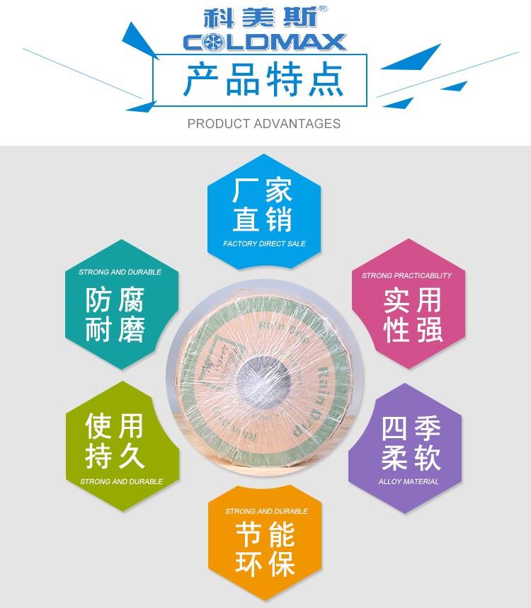 公司所有滴灌帶產(chǎn)品都嚴(yán)格按照中華人民共和國國家標(biāo)準(zhǔn)GB/T 19812.3----2008執(zhí)行生產(chǎn),使用中石化、中石油原料生產(chǎn)產(chǎn)品,不使用再生塑料,二次塑料生產(chǎn)!
