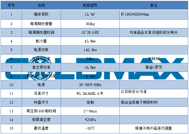 5、制冷系統:由制冷壓縮機組,R22或R404a制冷劑組成與捕水器組成循環的制冷系統。可根據客戶需求采用低溫螺桿式或雙級活塞式制冷壓縮機組,通常雙級活塞式壓縮機制冷效果更好,制冷溫度更低。