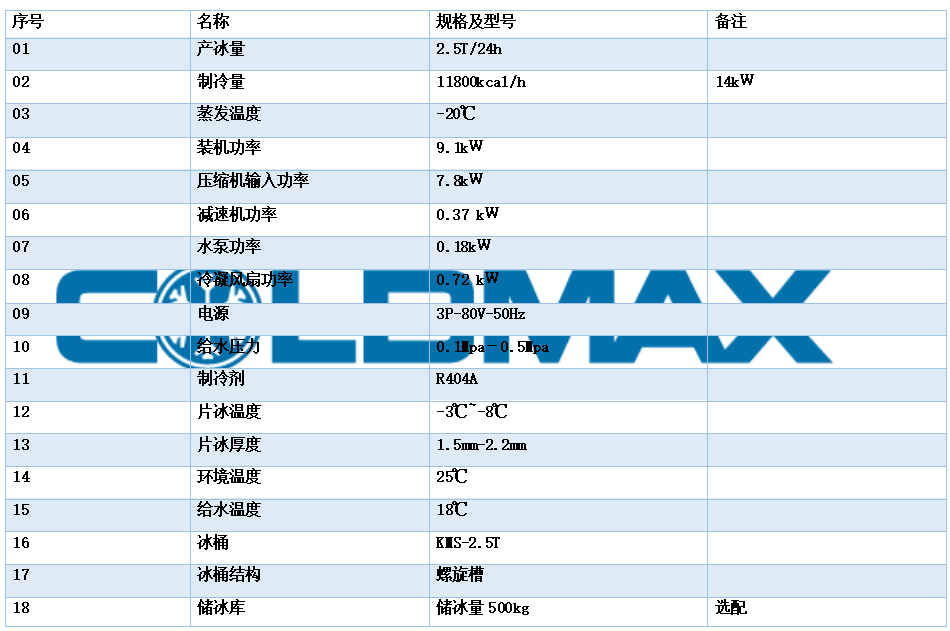 CFF-2.5A 片冰機(jī)設(shè)計(jì)參數(shù):