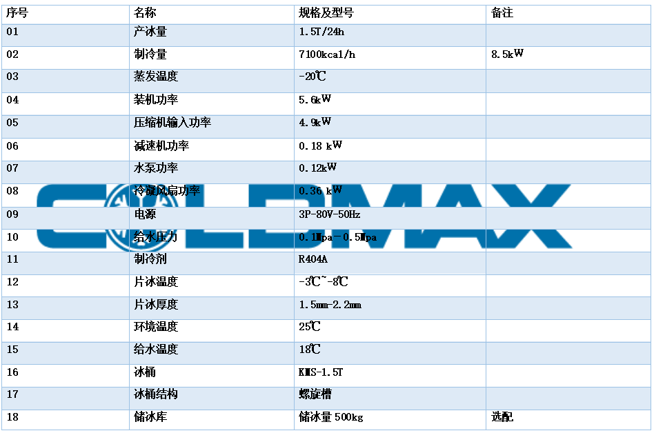 4. 高效節能: 優化設計的片冰機組,保證COLDMAX內刮式保鮮片冰機組連續性的運行,減少能量浪費的運轉。采用特殊合金材料和專利加工技術,確保高效熱傳導性能,COLDMAX片冰制冰機生產的片冰的冷卻表面為1750m2以上/噸。