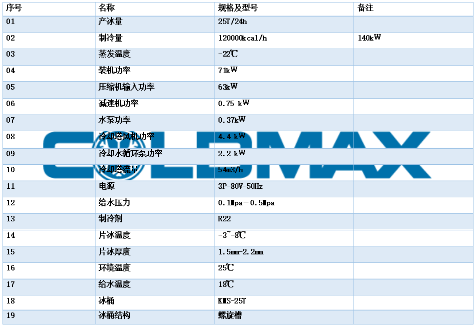 4:高效節能:優化設計的片冰機組,保證COLDMAX內刮式保鮮片冰機組連續性的運行,減少能量浪費的運轉。采用特殊合金材料和專利加工技術,確保高效熱傳導性能,COLDMAX片冰制冰機生產的片冰的冷卻表面為1750m2以上/噸。