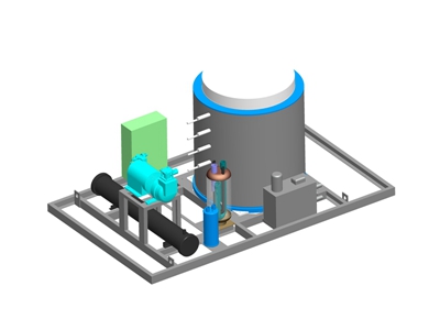 制冰系統采用微電腦全自動控制.缺水、反轉、冰滿,刮冰、高壓、低壓等故障數據反饋到PLC電腦程序內,再由微電腦自動處理后,顯示到電控觸摸屏,人機一體設計理念,讓操控、維護變得隨心而動,蒸發器采用SUS316不銹鋼或碳鋼鍍鉻鑄造而成,海水制冰系采用防腐蝕316不銹鋼材質和玻璃纖維表面處理工藝內部螺旋槽結構設計V型坡口焊接技術,蒸發器進行了高溫退火工藝,消除了鋼材內應力,內部烤漆處理,使流道焊接點定型,減少產生氟利昂泄露現象,設備長期使用過程中,低溫低壓下保持形狀大大提高了蒸發器和制冰系統的整體使用壽命.