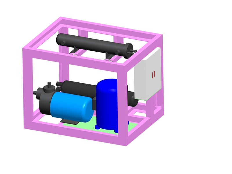 冰瓶機(jī)通常使用鹽水間接式制冷。將裝有水的塑料瓶放入鹽水池中,蓋上鹽水池蓋板,設(shè)備啟動(dòng)后,制冷機(jī)組開(kāi)始運(yùn)行;塑料瓶中的水先于鹽水池中的鹽水凝結(jié)成冰,從而實(shí)現(xiàn)冰瓶的制作。