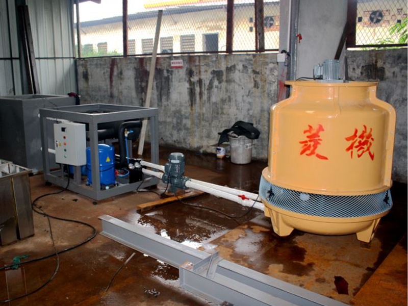 冰瓶機(jī)通常使用鹽水間接式制冷。將裝有水的塑料瓶放入鹽水池中,蓋上鹽水池蓋板,設(shè)備啟動(dòng)后,制冷機(jī)組開始運(yùn)行;塑料瓶中的水先于鹽水池中的鹽水凝結(jié)成冰,從而實(shí)現(xiàn)冰瓶的制作。