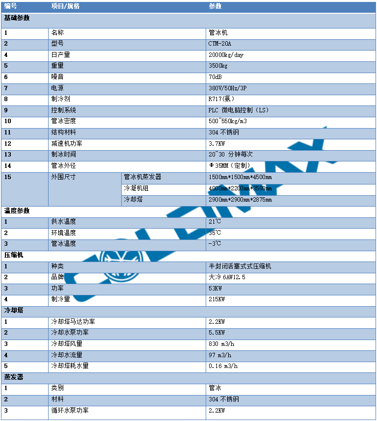 制冷系統: A.氟系統(R404a、R22);B.氨系統(R717)