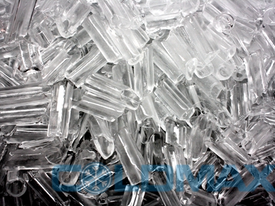 ●管冰呈中空圓柱形狀,外直徑尺寸為φ26mm、φ28mm、φ30mm、φ34mm等多種規格,長度27~50mm不等。內孔直徑可根據制冰時間調整,一般控制在φ5~10mm之間。