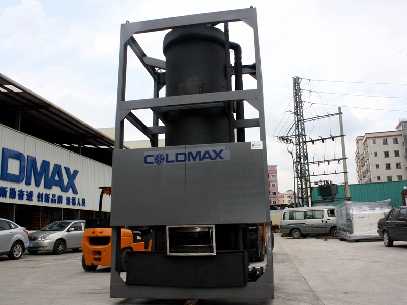 管冰機是一款生產圓柱型食用冰塊的制冰機。由多根不銹鋼管組成蒸發器,制冷劑在管與管之間流動,水在管內從上往下在分水器的作用下呈螺旋狀流動,水在流動過程中凝結成冰。
