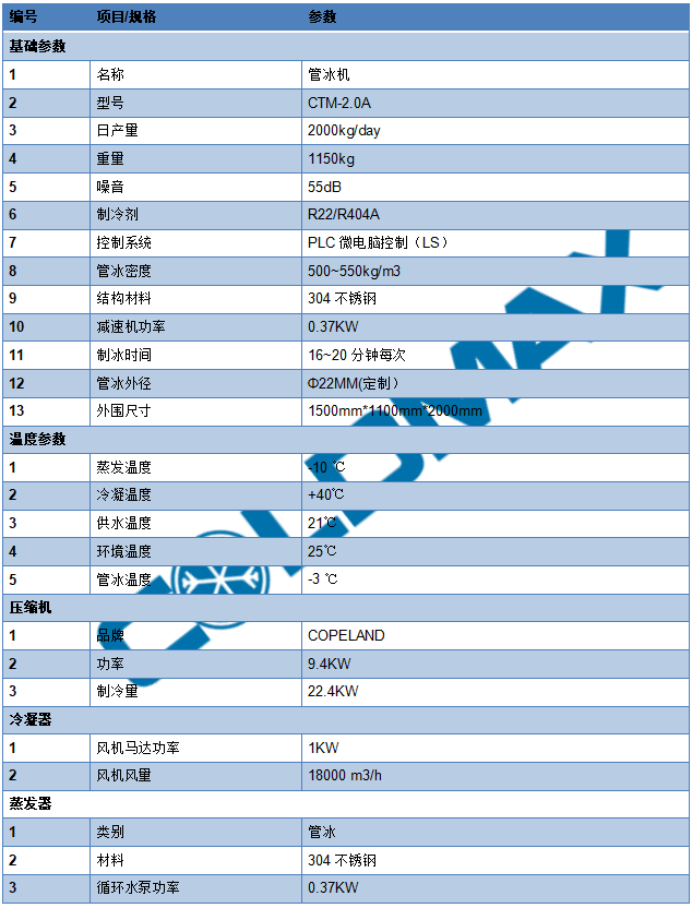 ●管冰呈中空圓柱形狀,外直徑尺寸為φ26mm、φ28mm、φ30mm、φ34mm等多種規(guī)格,長度27~50mm不等。內(nèi)孔直徑可根據(jù)制冰時間調(diào)整,一般控制在φ5~10mm之間。