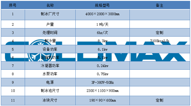 *訂制信息:壓縮機品牌、冰塊尺寸可定制、配件品牌、制冷劑等