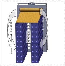 壓差預冷是強制通風預冷的一種,它以空氣為冷卻介質,通過機械加壓在預冷果蔬兩側產生一定壓力差,迫使冷空氣全部通過果蔬充填層,增加冷空氣與冷卻物間的接觸面積,從而使預冷食品被迅速冷卻的方法。這種方法冷卻速度快、降溫均勻和適用性強,特別適用于蔬菜、水果和鮮切花卉。