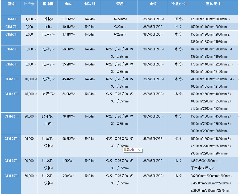 管冰機的型號:日產(chǎn)量1噸-50噸