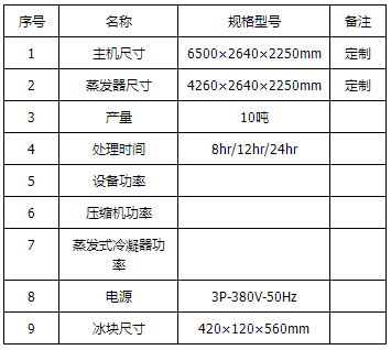 F.脫冰迅速快:水凍結成冰后,制冰系統反向加熱,熱氟進入蒸發器脫冰,脫冰速度快;脫冰后直接落在冰輸送裝置上,無需行車等取吊設備。